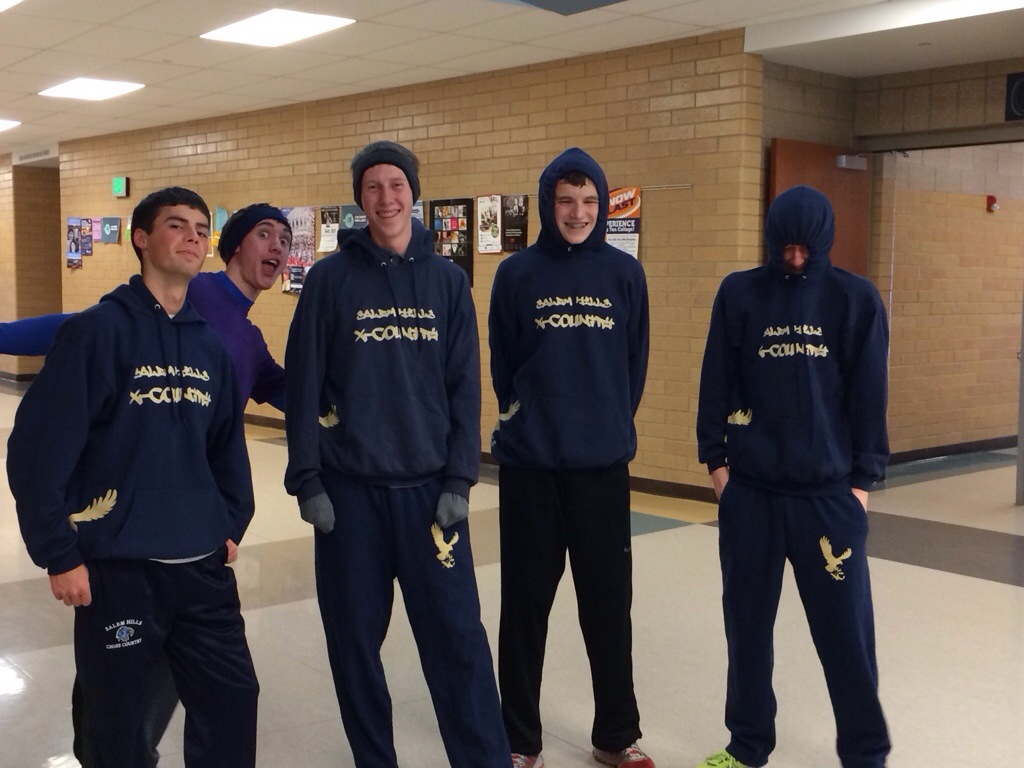 For indoor track I sent the kids on a LSD (long slow distance) run. They went for an hour and fifteen minutes today. Before they went they got bundled up for the cold weather outside…