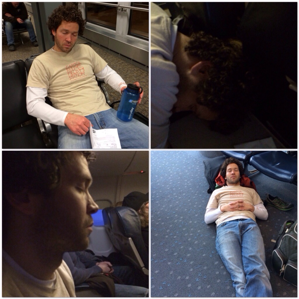 For me… My day started at 2:45 a.m. When my alarm went off; for Corom, his day is still going from yesterday… He did not go to bed last night. I would like to think that he is practicing for Ragnar but in all honesty… He waits until the last minute to do things. He ran out of time to go to sleep before we had to get up and leave for the airport. Every time I turn around and talk to him, he is sleeping… It reminds me of our honeymoon (totally joking :))!