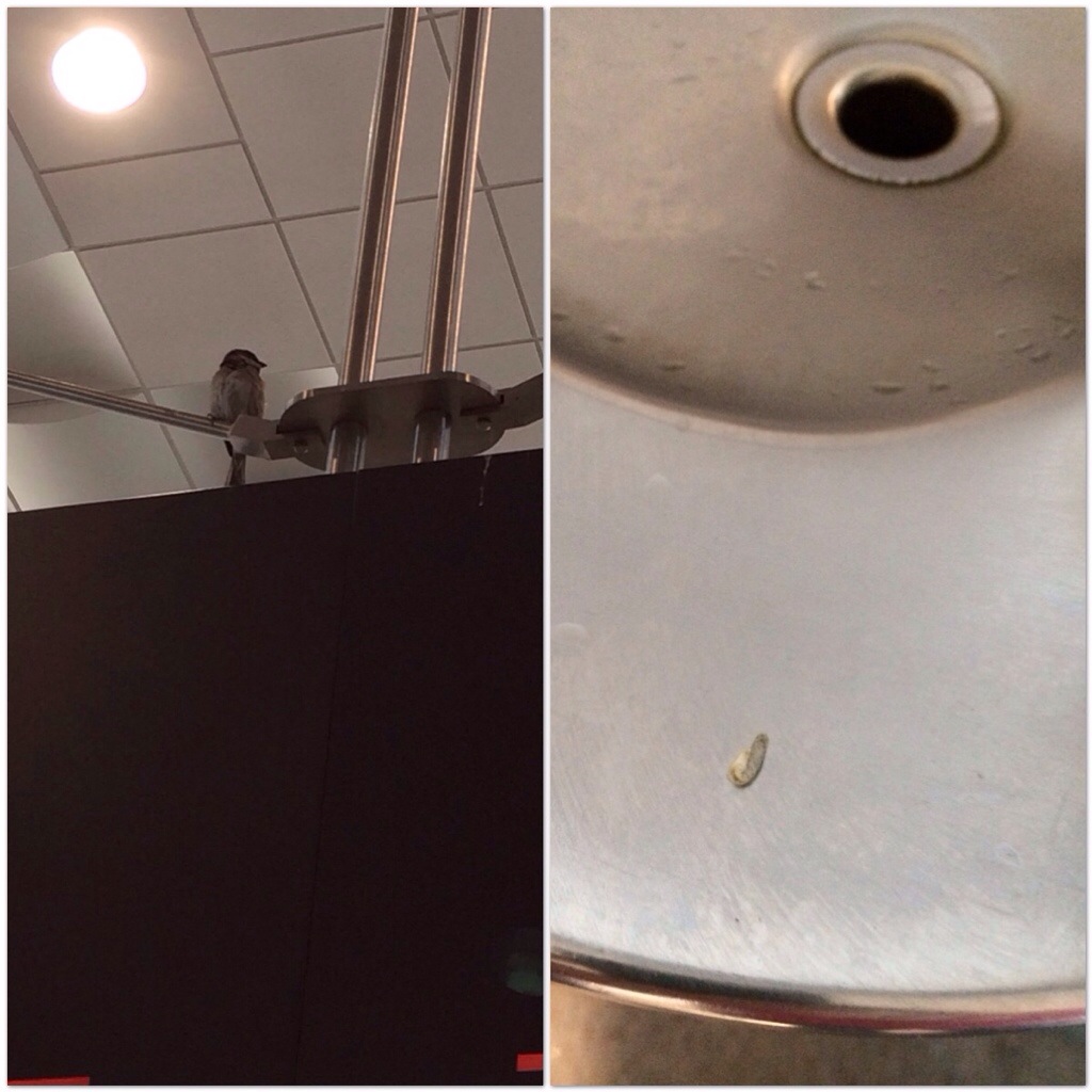 Corom helped a bird get a drink out of the drinking fountain. He clogged up the fountain and the little bird drank away… It also left a little present for Corom…