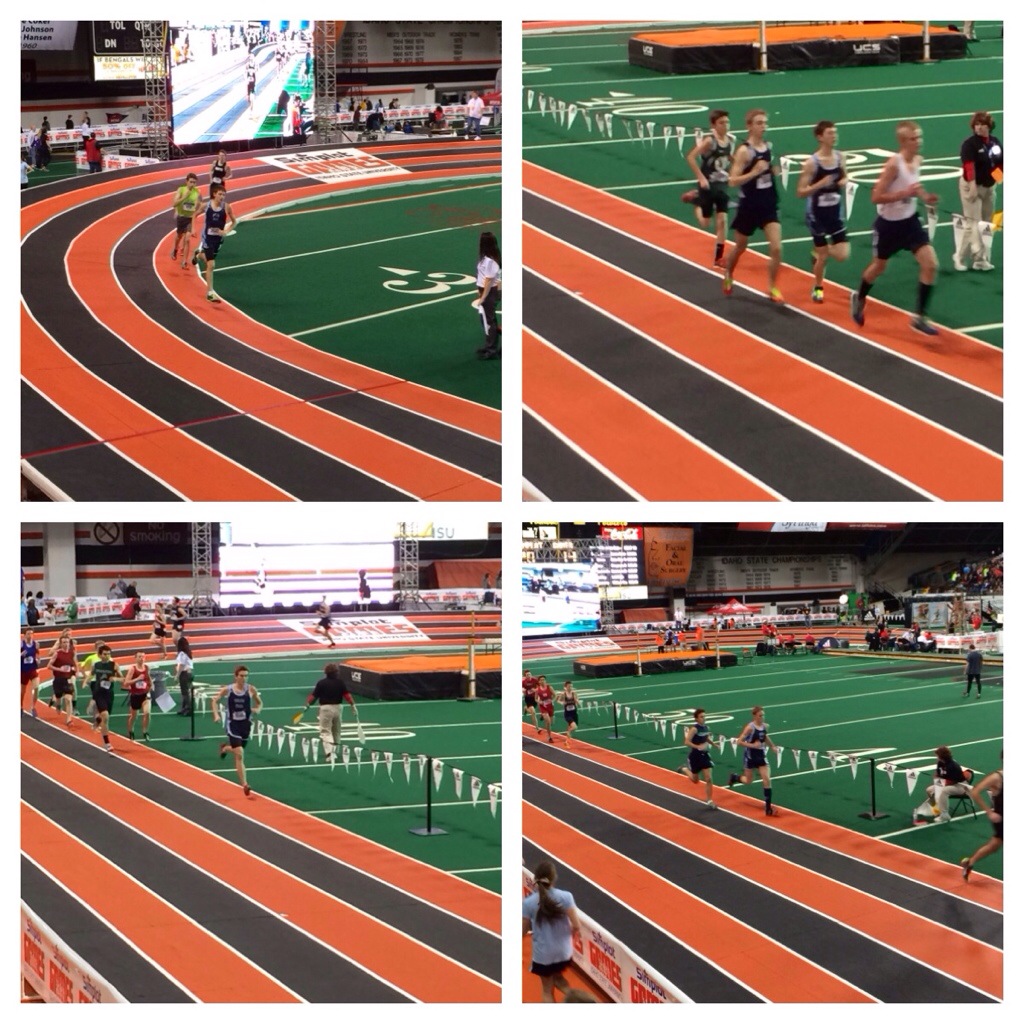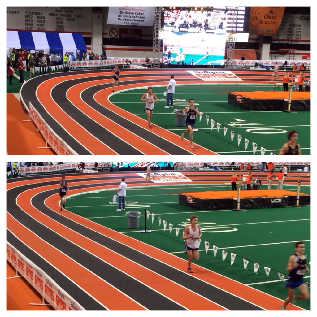 Once there we had our top runner compete in the 2 mile. He nailed the time he wanted! He hits his mark every time he races even when it looks like he is struggling. He is a very strong, solid runner and it is fun to watch him race. He ran a 9:42 2 miler and made it into the finals on Saturday. (Only the top 14 runners made it out of 5 heats.)