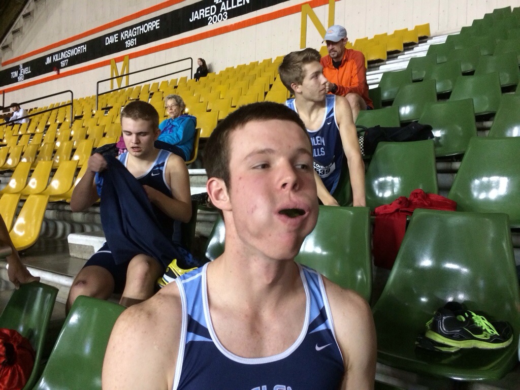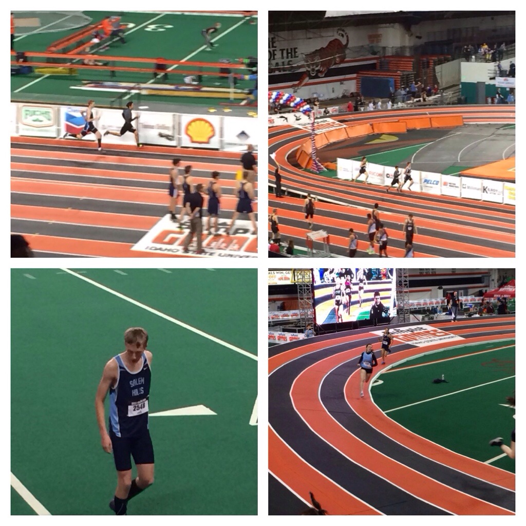 We (high school kids, coaches) got up early and went to the meet at the Idaho Holt Arena for the 2nd day of the Simplot Games. We had a little while before our kids had a race…