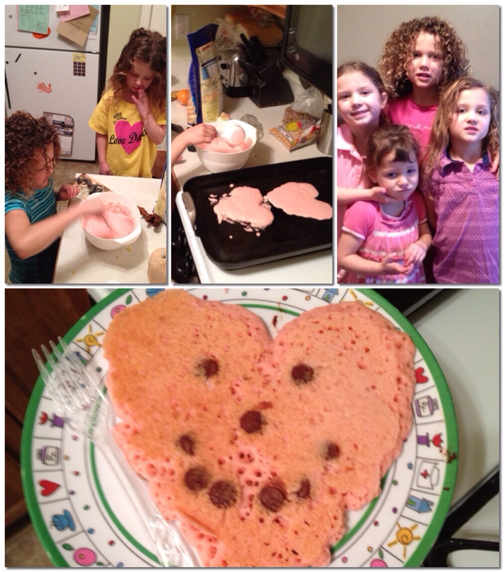 The girls and Corom made Valentine pancakes this morning…