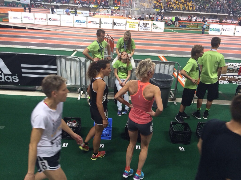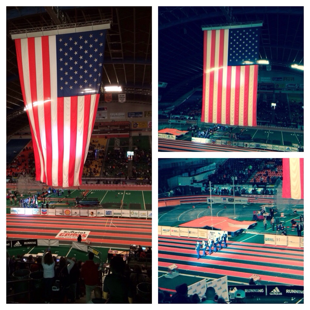 The high school athletes did a “parade” around the track to recognize them and all the different states they are coming from. We were able to grab one of the Olympians for a quick picture!