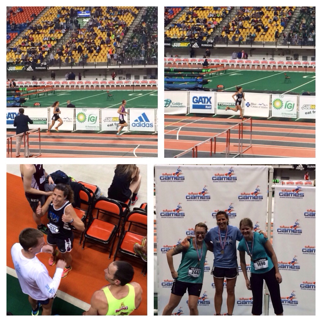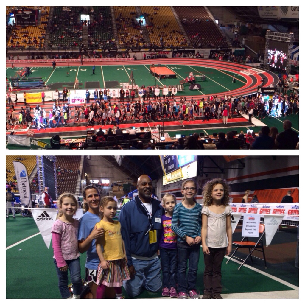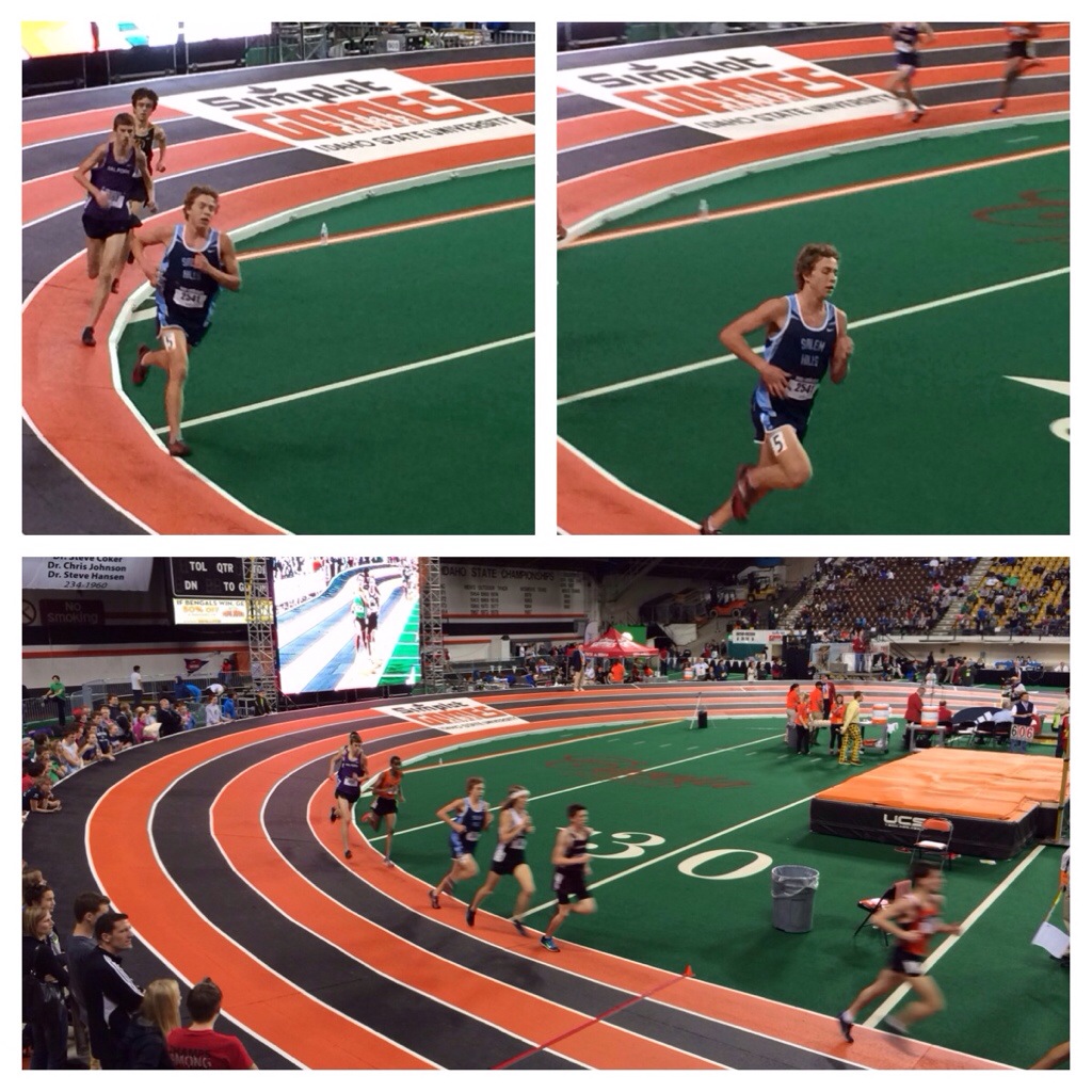 We had fun… Until we had to go clean up the room. I took off to the arena around 9 to watch my runner, run the mile. He did great! He ran the 1st 4 laps (it is a 200 meter track-on wood-so you have to run 8 times around to make it a mile) strong. The next 2 1/2, he ran tired. His posture and breathing changed. But, very impressively, held on to his lap splits. The last lap and a half he pushed and was able to get a great lap split! He matched his PR (personal record). He ran well. A 4:36 mile!