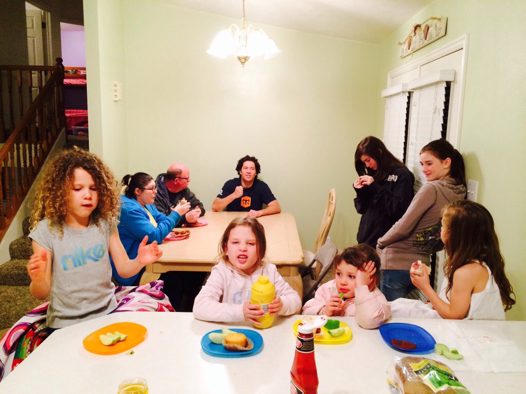 I had a good 7 1/2 hour sleep last night but I still felt way tired this morning… I had to get myself and Corom out of bed to get ourselves and the girls ready for church. Church was good today but the girls… Not so much… Not just at church but at home, too. They were hyper half the time and fought the other half today! My 3rd was picked on a lot by her 2 older sisters. It is hard when they do that to her. Anyway… After church we had our friends, the Cornabys over for lunch and then our neighbors, Melinda and Barry came over, Julie A., and Gabby and Abby…