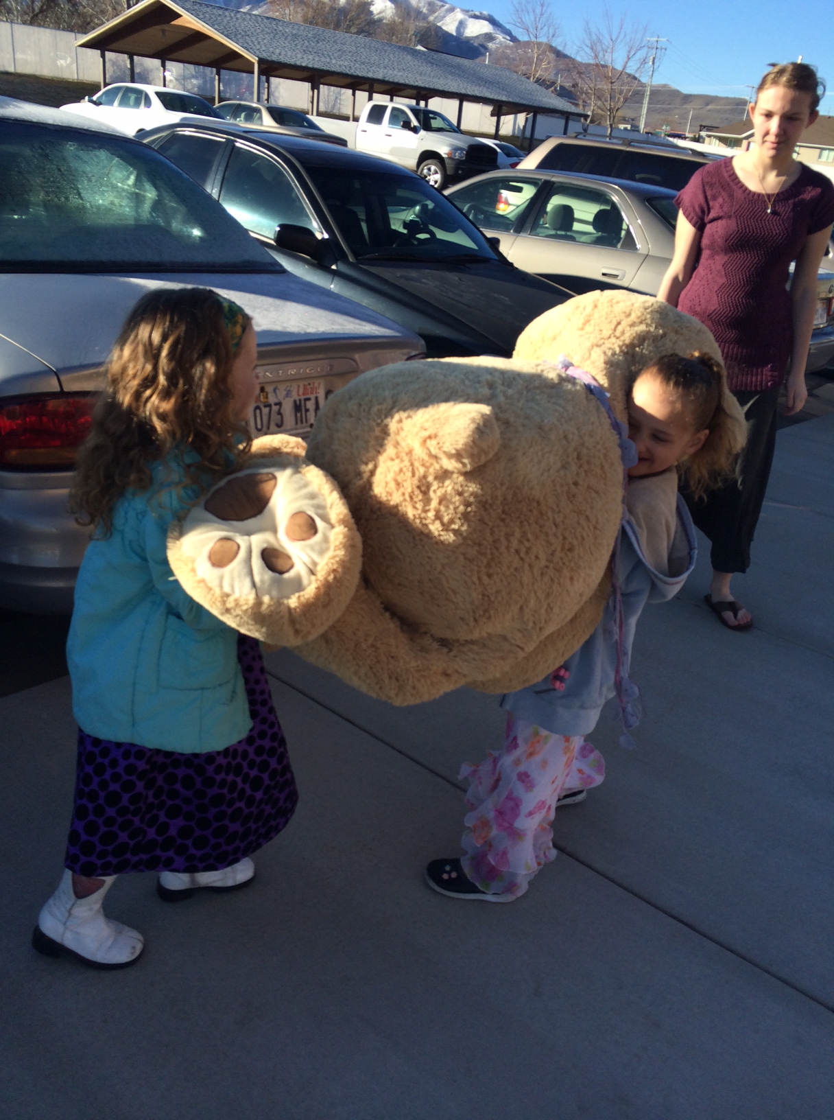 Another rest day for me and normally I would be excited but since my injury I’m kind of bummed about not running. We went to church not knowing that the girls had planned a stowaway with the big teddy bear and hid him in the back of the van. As w head into church the girls pulled big old a Teddy out of the car and started dragging into church. Luckily We stopped them before they got to the door.