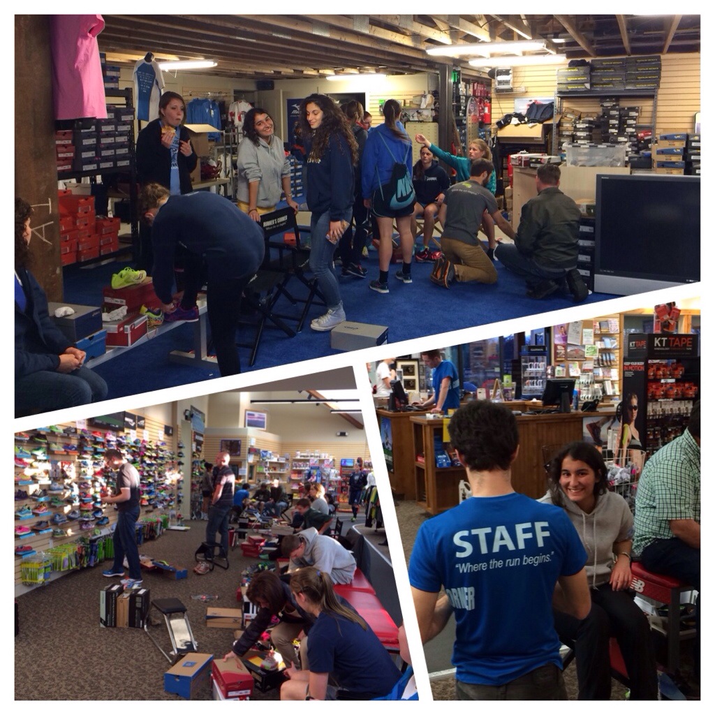 The track team went to Runner’s Corner this evening for “Spike” night. The shoes are all discounted and they offered a huge selection to the kids. We had about 70-75 kids show! (The store had pizza there for everyone. :))