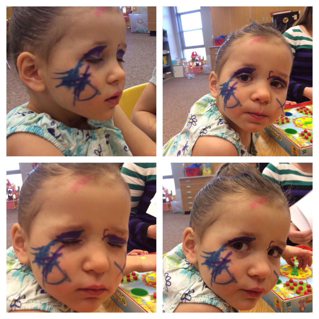 She said she had to put on her makeup for the day. I don’t know where she gets it from because I don’t own any makeup (except for mascara that I put on probably about twice a week) and I don’t even know how to put it on! Well… We had a lot of comments all day.