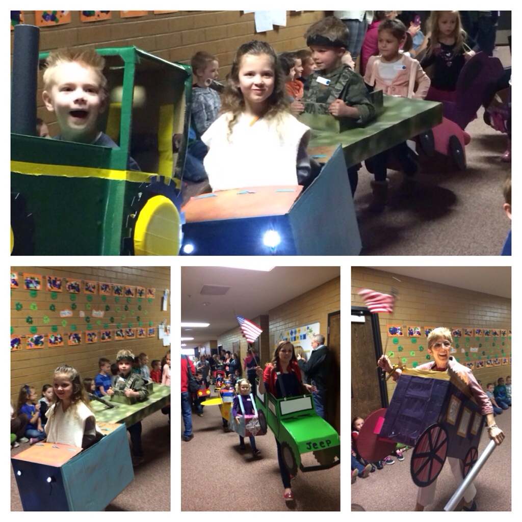 The kindergartener’s started off with a parade of their box cars…
