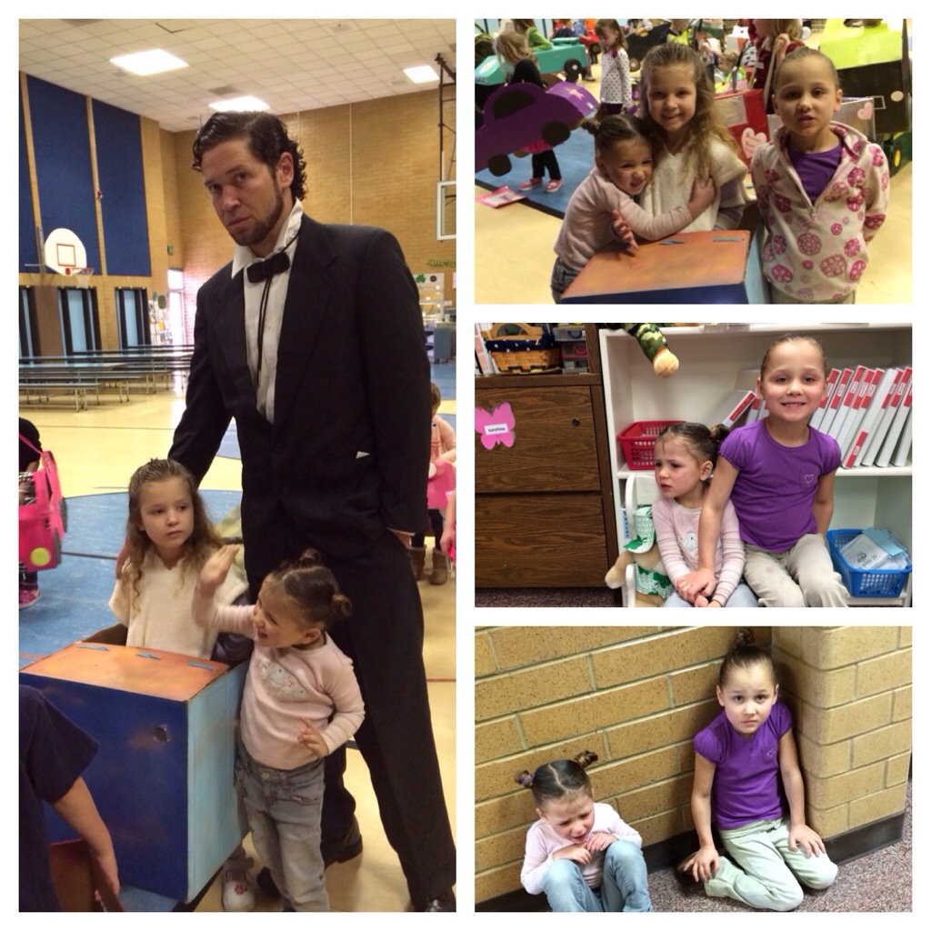 The kids were split into smaller groups (there were 3 different kindergarten classes). Another mom and I had 12 kids in our group (3 of them were mine :/). We went to different stations and each station had a different speaker…