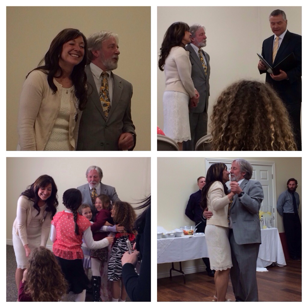 It was a very nice ceremony! The Bishop that married them did a great job. Both Sarah (my mother-in-law) and her new husband, Gary had their spouses pass away. The bishop talked about their first marriages and tied it into theirs beautifully! They are happy and Gary’s kids are a lot if fun! Corom and I really like him and his family.