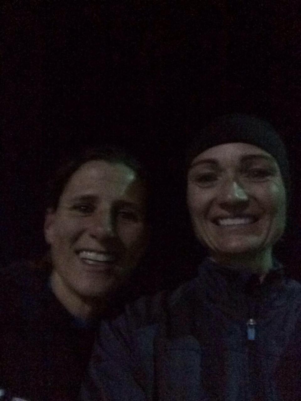 My alarm went off way too early this morning. We (Beth, Mac, Amber, Aubrey and I) met at the track at 5:15 a.m. (This is Beth and I.)
