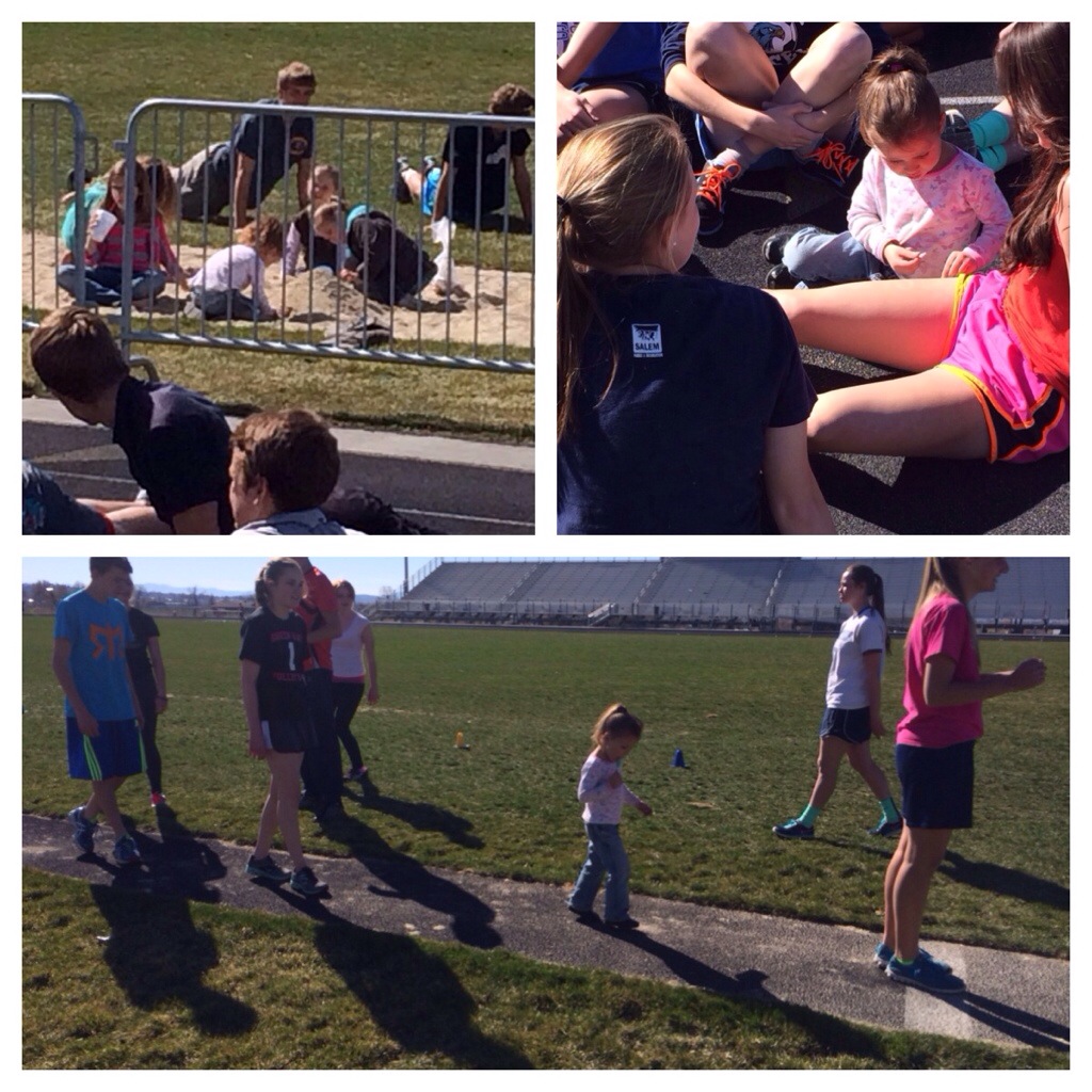 At track the distance kids went on a 50 minute (5-7 mile) recovery run. And my girls played in the sand or tormented the other kids or tried to join in.
