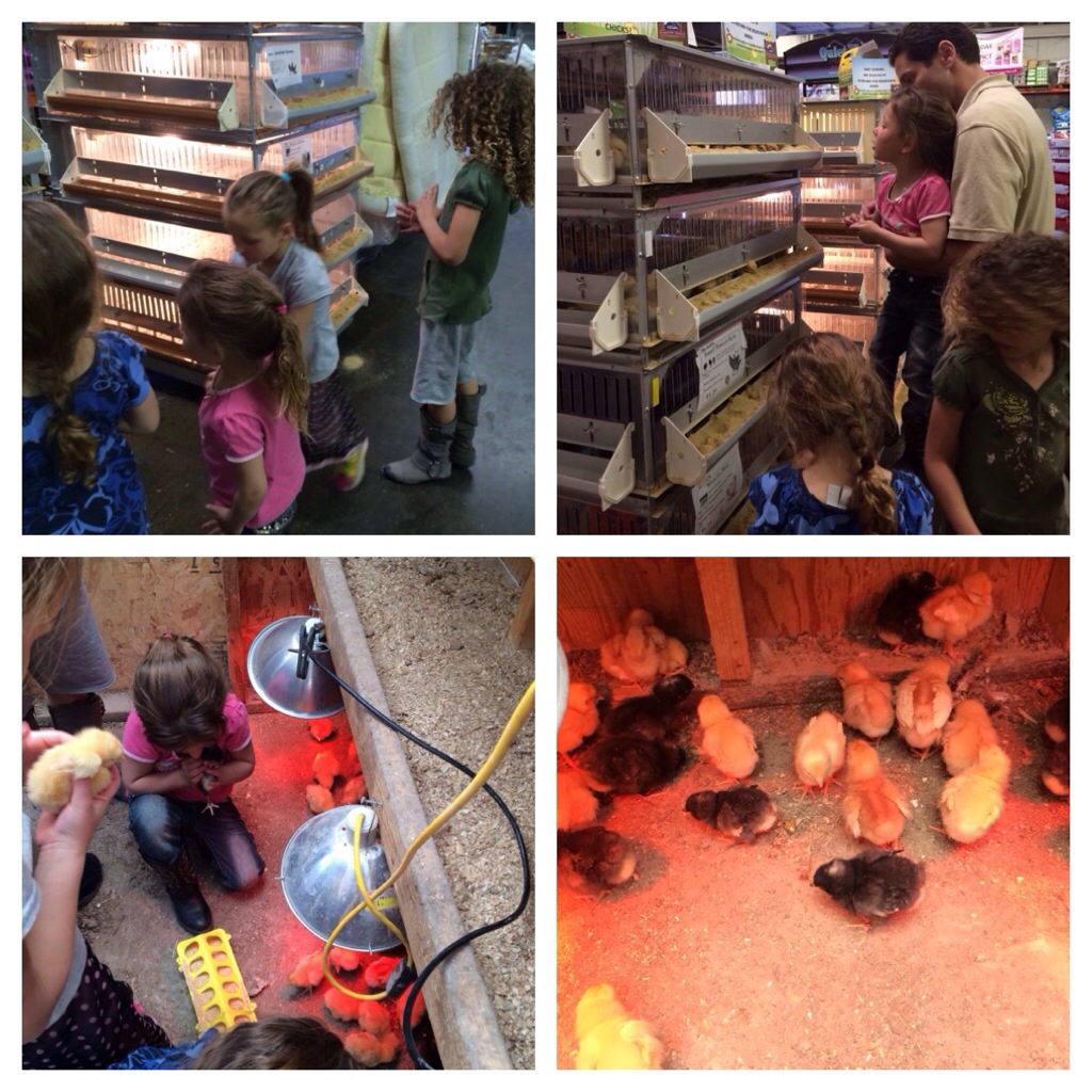 After practice, the girls, Corom and I met up with G-goat (Corom’s mom) and she had the girls pick out 30 baby chicks… The girls were so excited! We will take 5 home with us once they can be put outside. Cute little chicks!