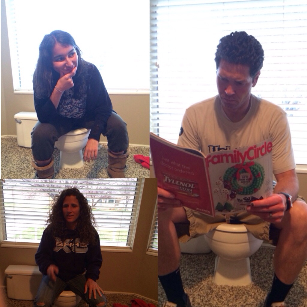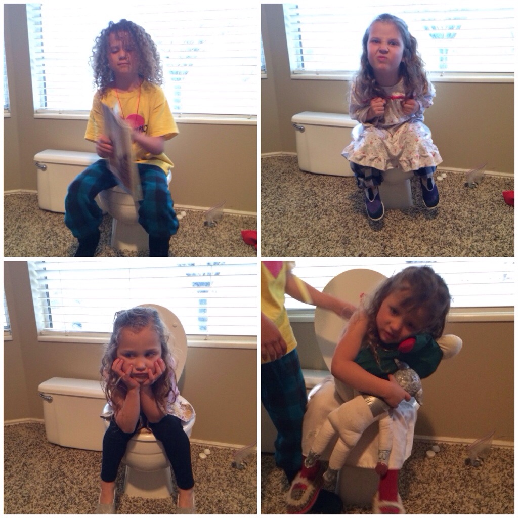 Then we took our turn on the pot! This toilet has been sitting in our family room for 4 days now!!!!! I keep telling Corom to get it out of here. 🙂