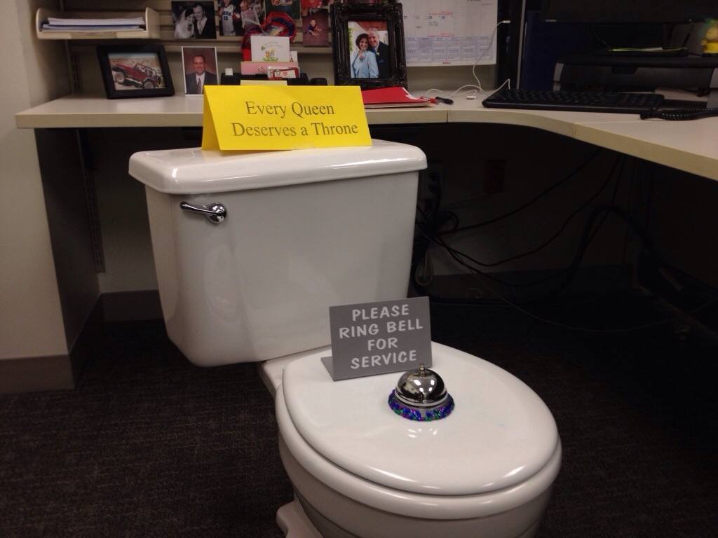Corom played a joke on a co-worker for April Fool’s day… He replaced her nice comfy chair for this…