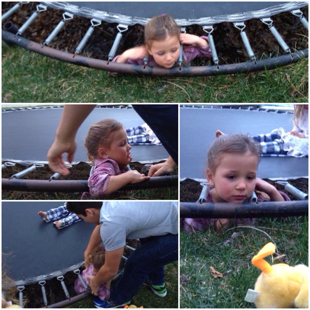 Our youngest did get stuck under the trampoline… It took her a little while to get out…