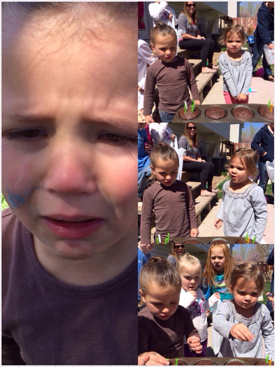A lot of the parents stayed to hang around… The kids had fun! We did a little Easter egg hunt and then had cupcakes (with no frosting… I kind of forgot about the frosting) ;). It was our neighbor’s birthday too… She turned 3 today so we celebrated hers too…
