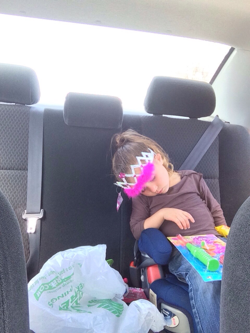 My youngest went out to lunch and to the $1 store with G-Goat (her grandma- Corom’s mom) for her birthday. She was so excited and I guess the adventure wore her out…