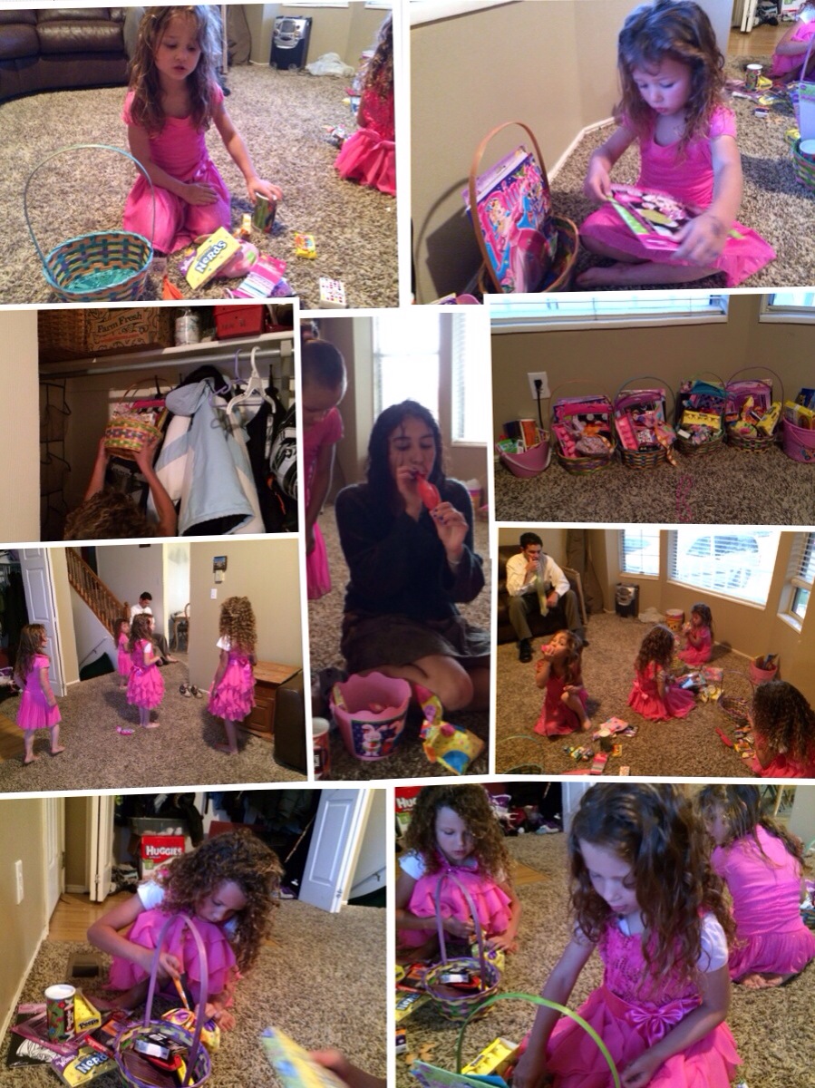 The girls were so sad… The 2 older ones walked back to their rooms and said they wanted to go back to bed. I had to let them know before they began to cry so I said oh you have to go find your new baskets… All my girls ran back downstairs with more energy and excitement than before… They found their baskets and had fun going through them.