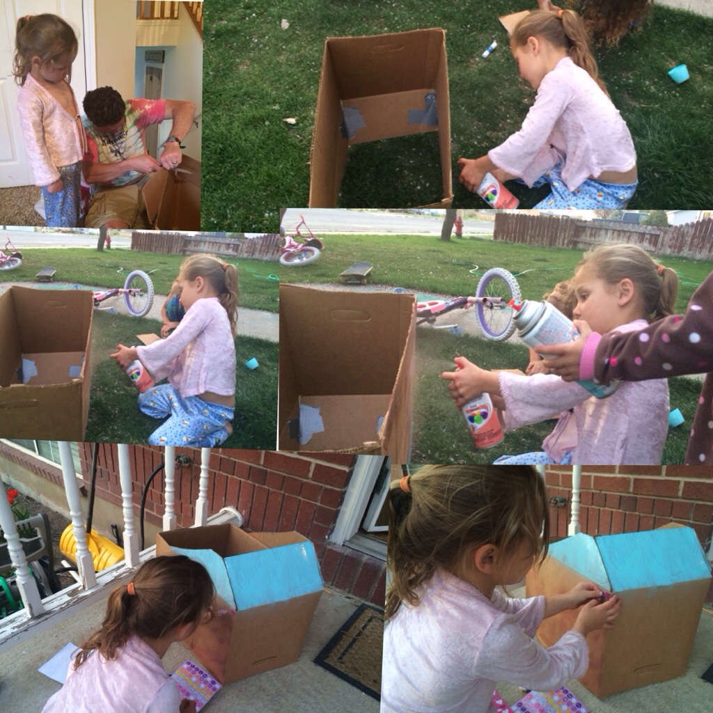 Right before we put the girls to bed, we helped our preschooler (3rd child) with her box car for her class…