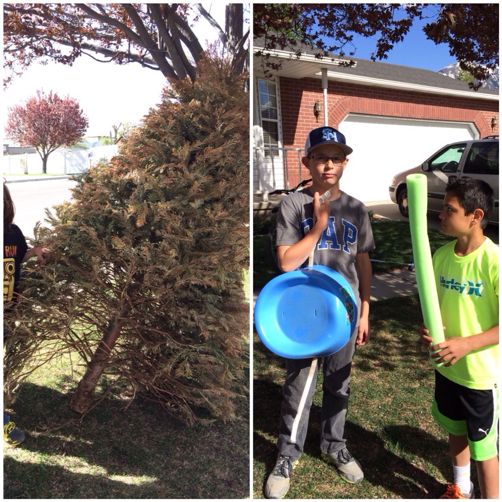 We played the game Bigger or Better for our activity. I gave them each a piece of candy and they had to go to neighbor’s homes and get something bigger and better. Yeah… That was not the best idea… This is what the teams came back with…