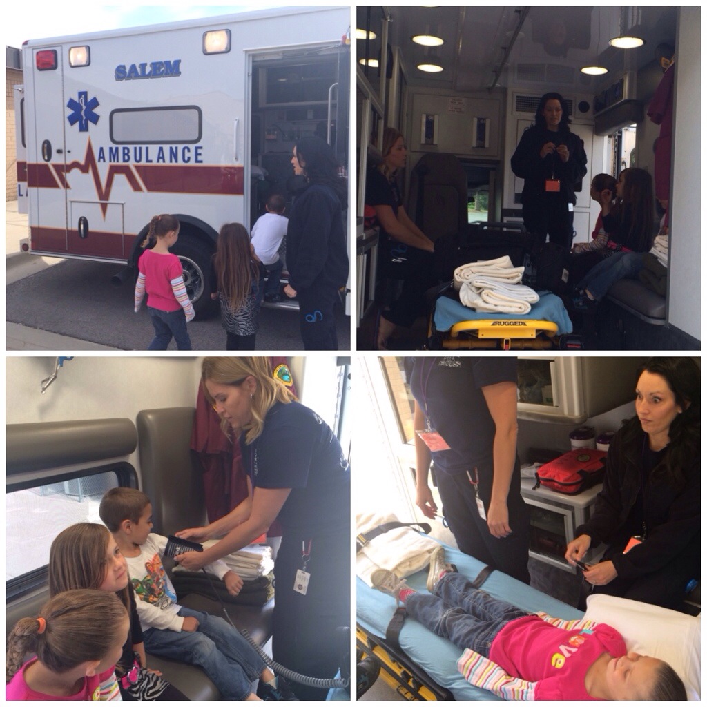 I took the girls to school and had the opportunity to go to my kindergartener’s classroom to help. It was community appreciation day. My sister-in-law (the girls’s Aunt) came in the Ambulance…