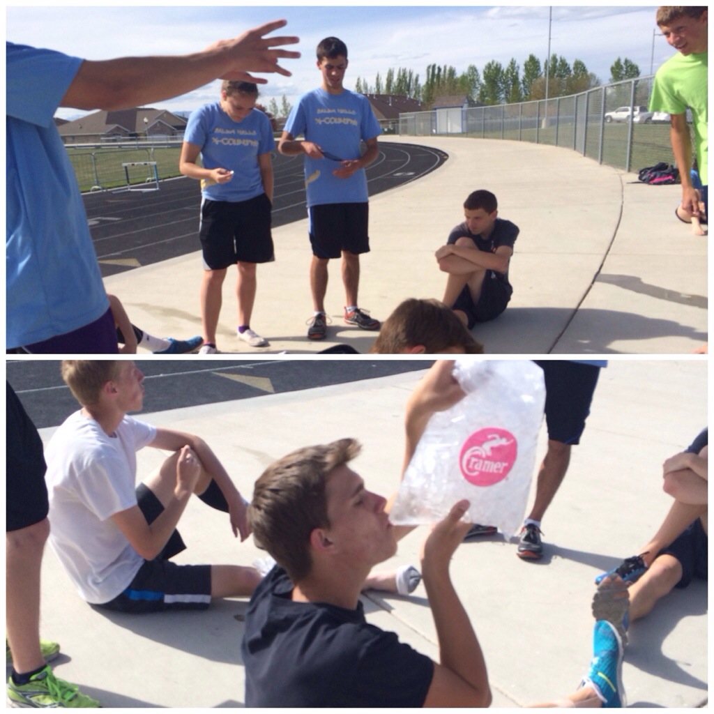 I went to track for just a little bit today. I sent them off on a run and had to take Z (our foreign exchange student) somewhere. I made it back for the last 10 minutes of practice to find the kids sitting, stretching, icing, etc.