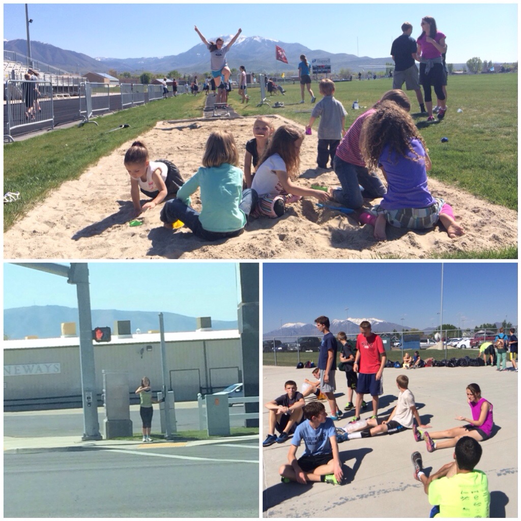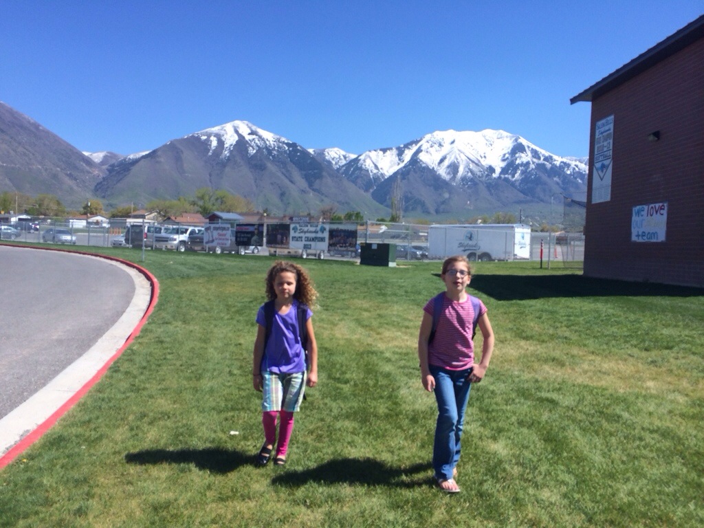 Today I hung out at a neighbors (Emilee’s with Camille) for a little while and we let the kids play and then we went to track practice… (My oldest and the head coaches oldest walked to track from the elementary school for the 1st time. It is right across the street but you have to cross a busy road with the help of a crossing guard. The girls didn’t know that I went out to watch them walk…(you can see 2 small figures behind the fence :)). Yeah I’m probably a little too much. đ
