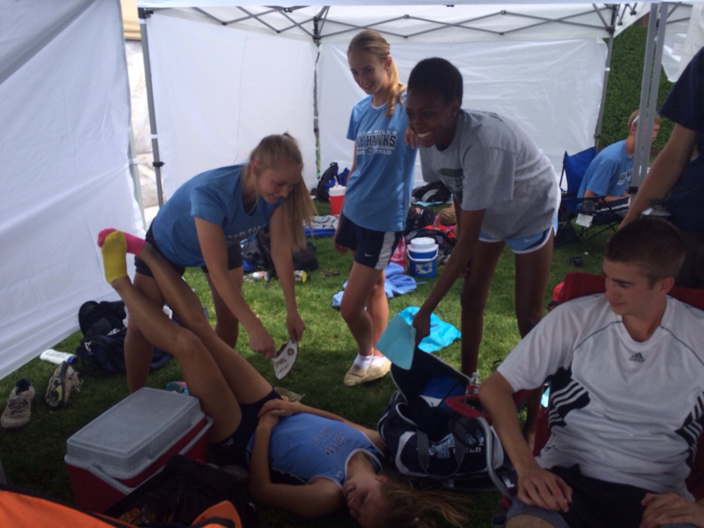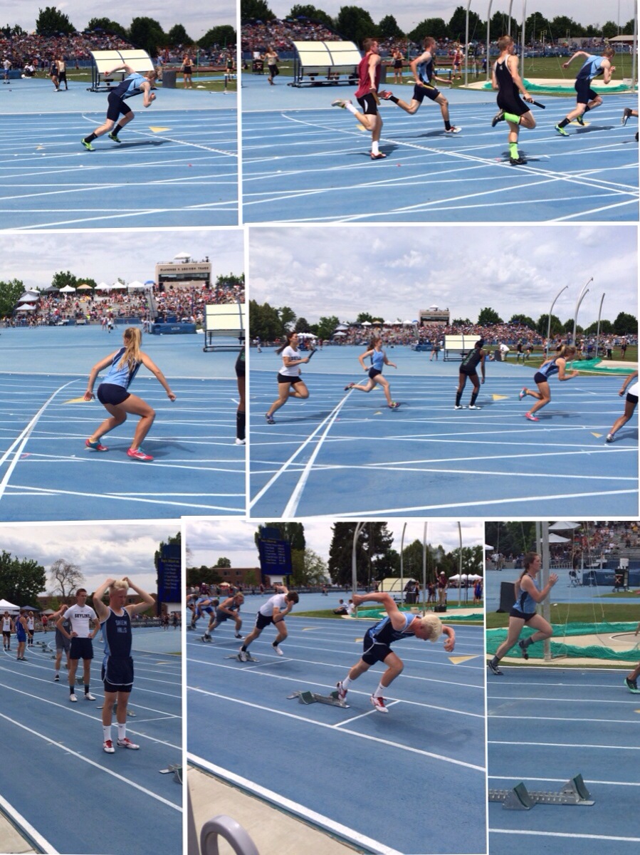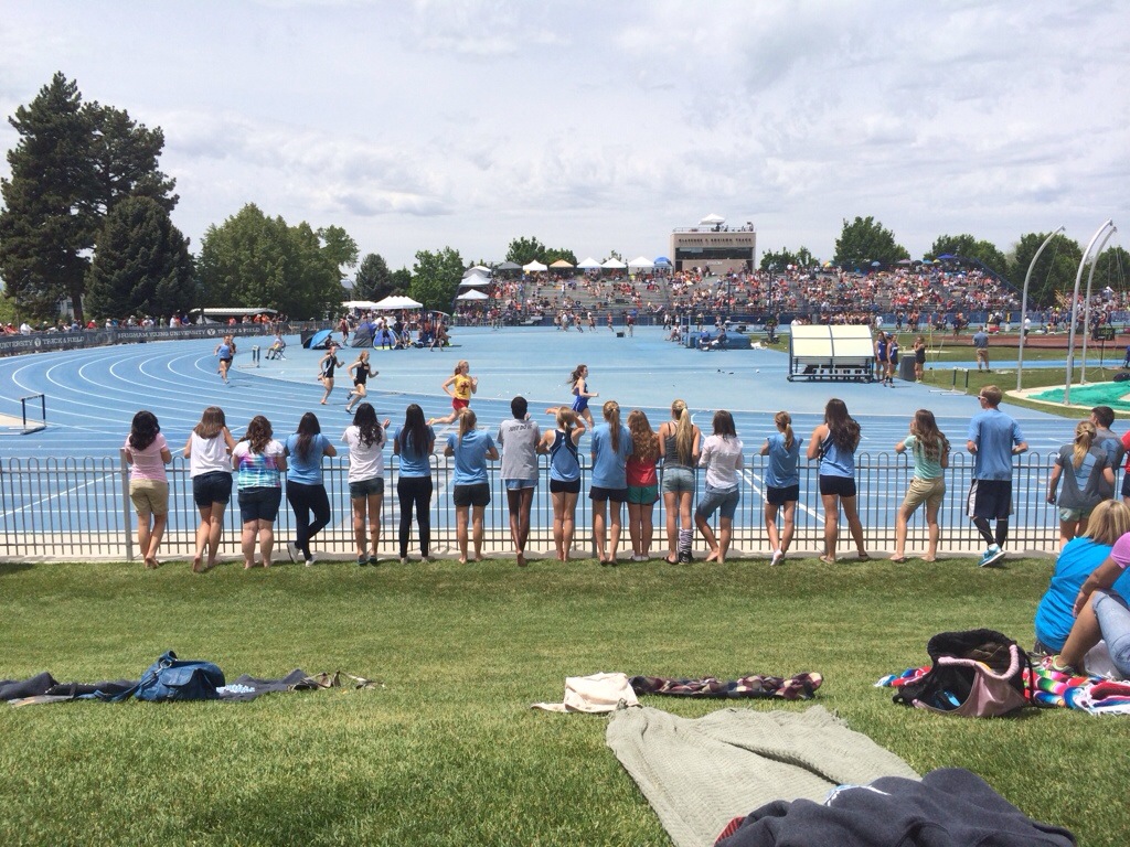 The javelin girls threw well! Our top female placed 4th in State. We went on to the sprints, boy’s high jump and girl’s long jump. The sprinters raced well and many made it into the finals on the male and female side (5 out of the 6 relay teams made it to tomorrow’s finals- 4 x 100’s, 4 x 400’s, and the boy’s medley). They were exciting to watch…