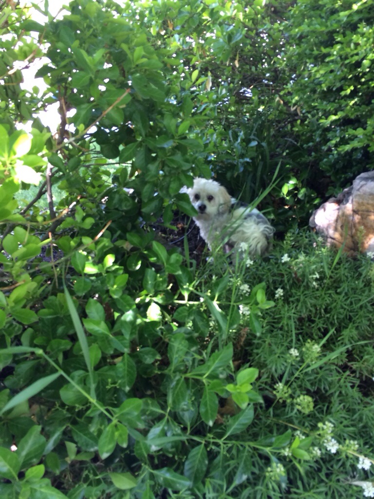 On the way home I let a friend’s dog out for a “pottie” break. Yeah… 20 minutes later, a few snaps at my arm (or so I thought) many growls and a few times of running into the bushes to get him out, I finally got the dog inside.