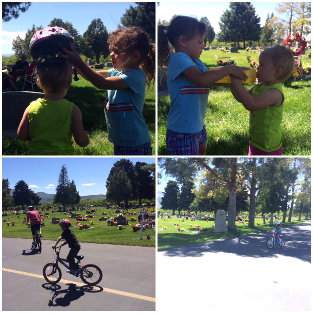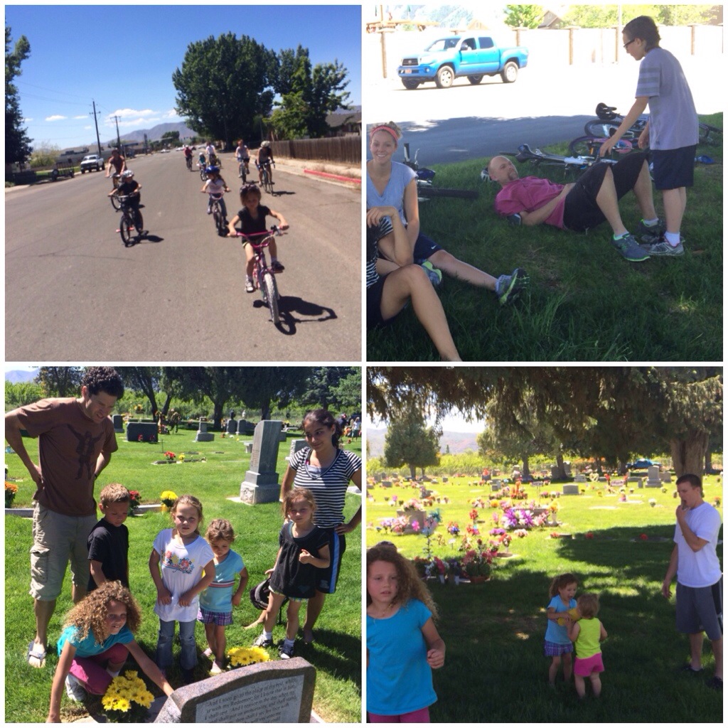 I love mowing the lawn! After the work was done… Well when we were done… Some friends came over and we went for a bike ride to the cemetery.