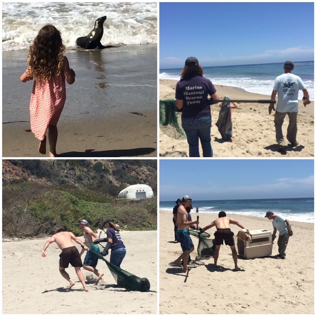 My run started at 5:45 a.m. I ran around the beach and the campsites today. I ran for 50.02 and then finished off with 6 x 100 strides. I was supposed to get at least 5 miles in but ran more than that. I did add a little speed to my workout. I tempoed for 6:15, then for 3:30 and then for 2 minutes. It felt good but my legs have been feeling “heavy” lately. I know that time will pass. We had another fun and eventful day… There was a baby seal that needed some help and of course Corom and Mike had to help capture and put the seal in the cage.