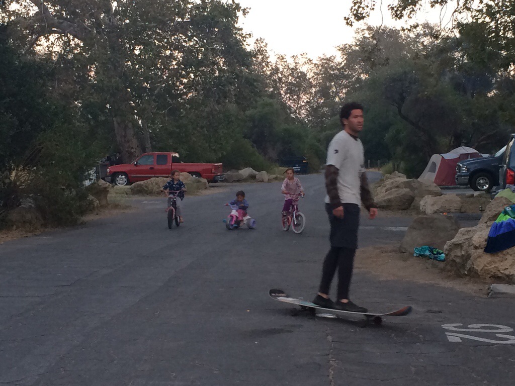 We taught Z (our Foriegn exchange student) how to build and start a fire, they tried to teach my youngest how to ride a bike, my sister-in-law and nephews came back and hung out for a while, and we hung out with our “neighbors” and helped them prank another campsite… I don’t know how we get involved with this kind of stuff, but I love it!!!