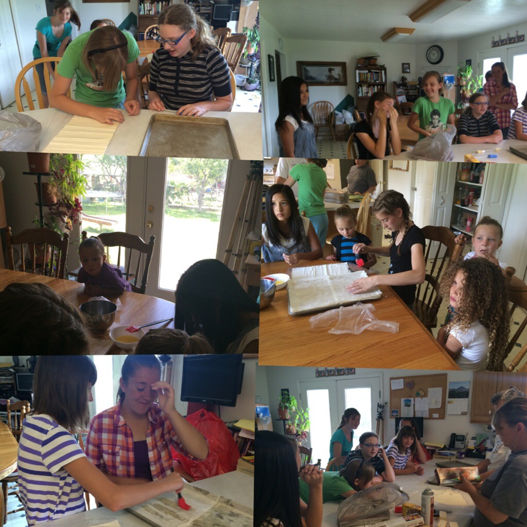 This afternoon, the kids played with more friends and neighbors and then this evening I went to YW’s (young women’s). The girls tonight worked on their skits for girls camp… Fun times!