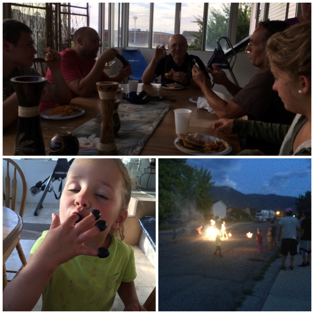 We watched a movie together, went for a walk, made a chocolate milk shake, made one for our 92 year neighbor (Dottie), and hung out with her for a little while. It was a nice afternoon! We all (Corom and my 4 girls) met up at the Booth’s house for a barbecue and a little firework fun…