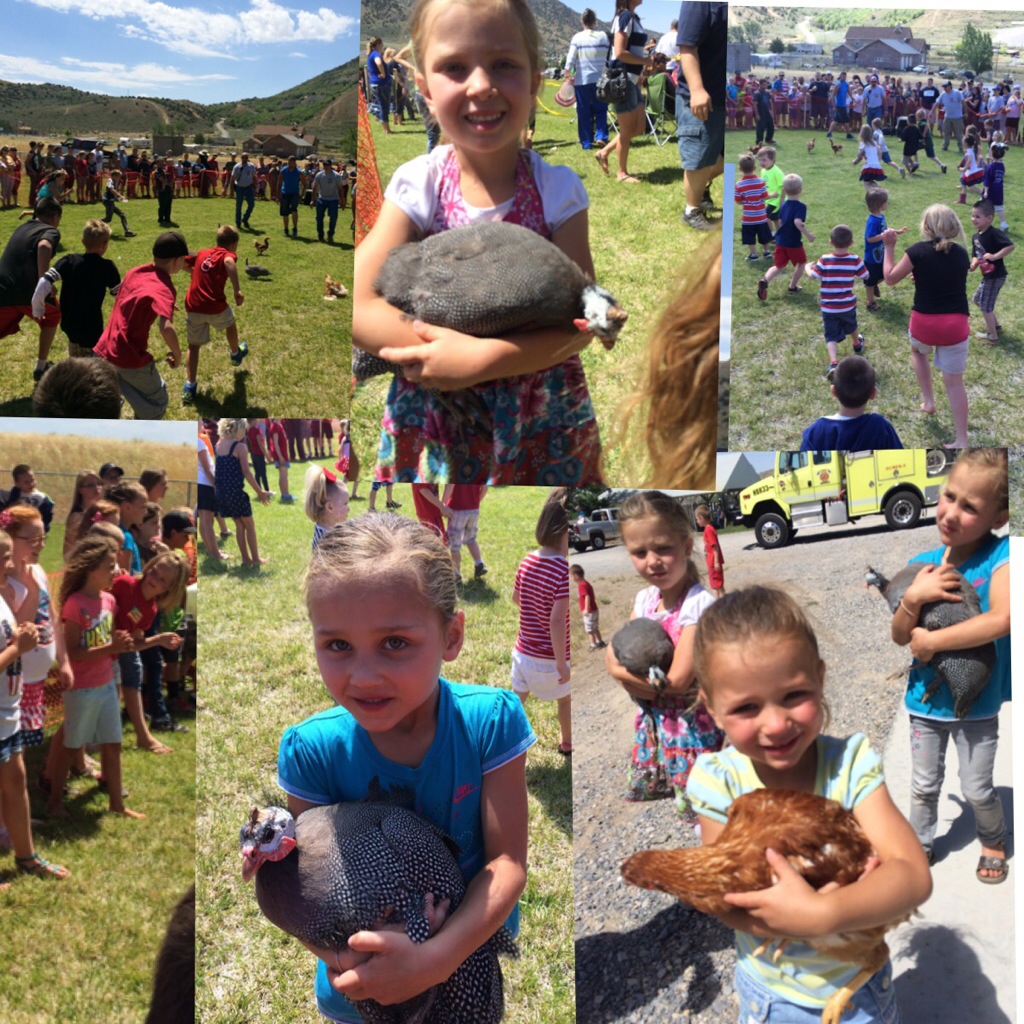 They had a chicken competition… All the kids were put into a ring. They would release 5 chickens and whomever caught one could take it home. What do you think… Did we get a chicken?…