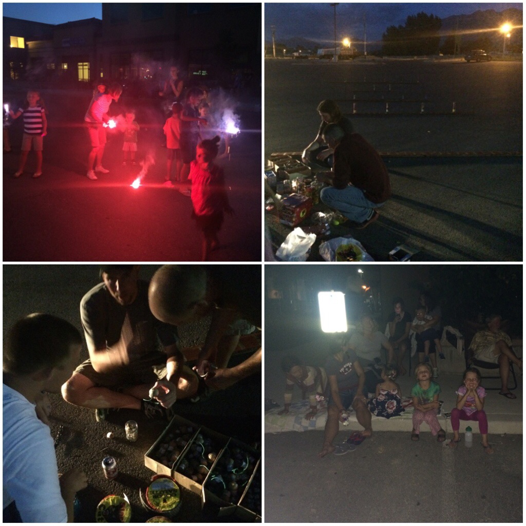 We, then headed over to the gym (South Valley Gym) and Corom, Mike, Travis B, Jason B, and a few other guys began our fire work show. A little more than 50 people showed up to watch. It made the guys a little more excited and in return they began to act like little boys. :/ It was very entertaining. A couple of them were burned but it didn’t seem to bother them!