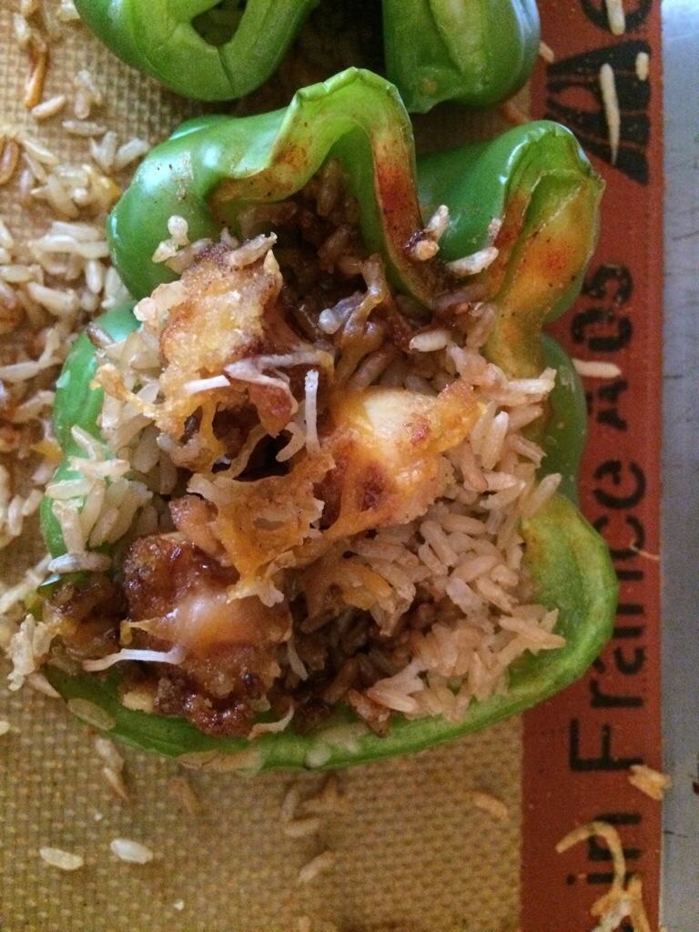 It took a while for them to clean up after themselves! Ahhhhh… One of those days. Corom did go mountain biking with Mike Fullmer and Jason Booth. They had fun… I wanted to go so bad but after being gone for the past couple of days, I thought best to stay home. Also to pay babysitters more… Yeah not happening! It was good though. For dinner, thanks to Jenae, I baked a green pepper stuffed with rice and chicken. I added teriyaki sauce for seasoning. It was so good!