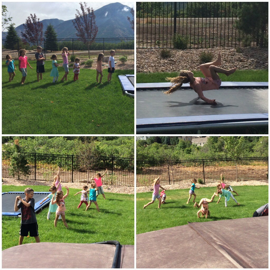 We then went up to the Fullmer’s house for the girls “gymnastics” lessons. Their daughter teaches other little kids the basics of tumbling for $10 a month per child. (It is once a week for 45 minutes.)
