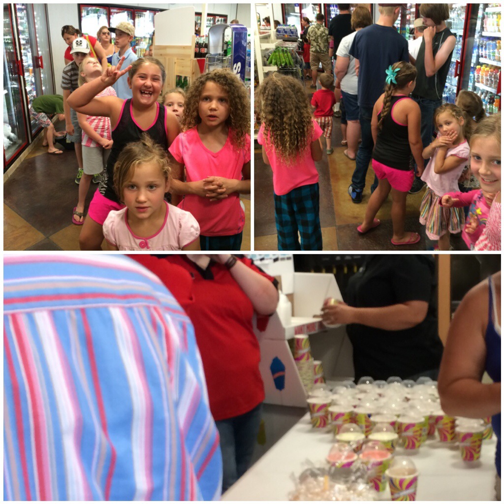 A couple of neighbor kids came over to play and then a friend of mine, her kids and me and my girls went to the good old 7-11 for slurpee’s (free slurpee’s today with it being 7/11). Talk about long line! It was mine and my kids 1st time partaking of the 7-11 freebie slurpee. It was rather entertaining!
