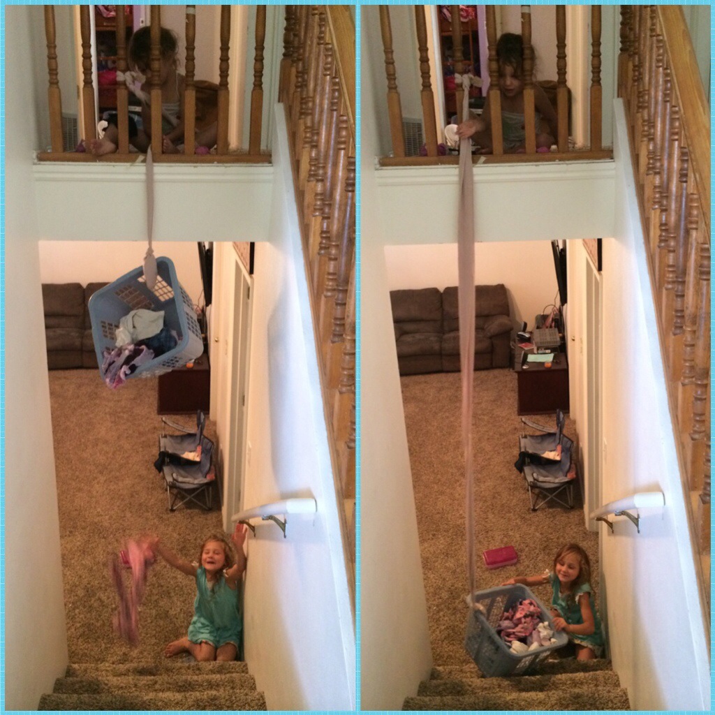 20140726-195429-71669018.jpg Good run. At home, I was on the phone with my sisters and mom for about an hour trying to figure out our Greece/Spain trip. My mom is from Greece and my little sister is living in Spain (her husband is in the military). We booked our flight after much talking. So in November my sisters, mom and I are going for a ladies trip. :/ Very mixed emotions but once in a lifetime opportunity!!! After lunch, Corom and I took the girls to a “clean” pond. Well before we went, the girls had to do their chores. One of the chores they had to do was clean their bedrooms… This is what they made to hurry the process up with taking their dirty clothes down to the laundry room…