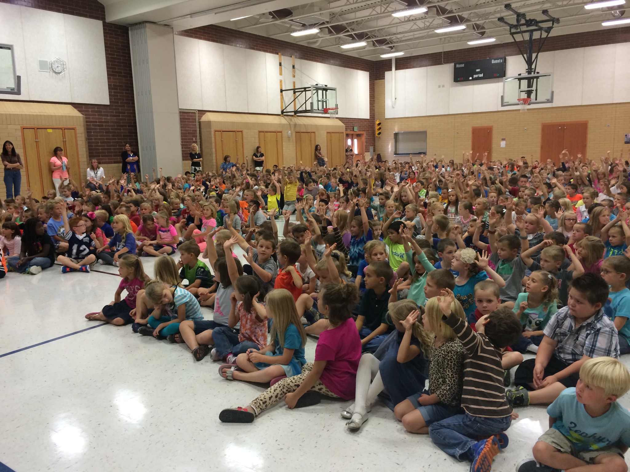 The 2 kids went home, my neighbor watched my kids and Stephanie, Melissa and I went to the other Elementary school to help present the challenge to them. We only spoke for a minute and then handed it over to their schools representatives. It was a successful assembly.