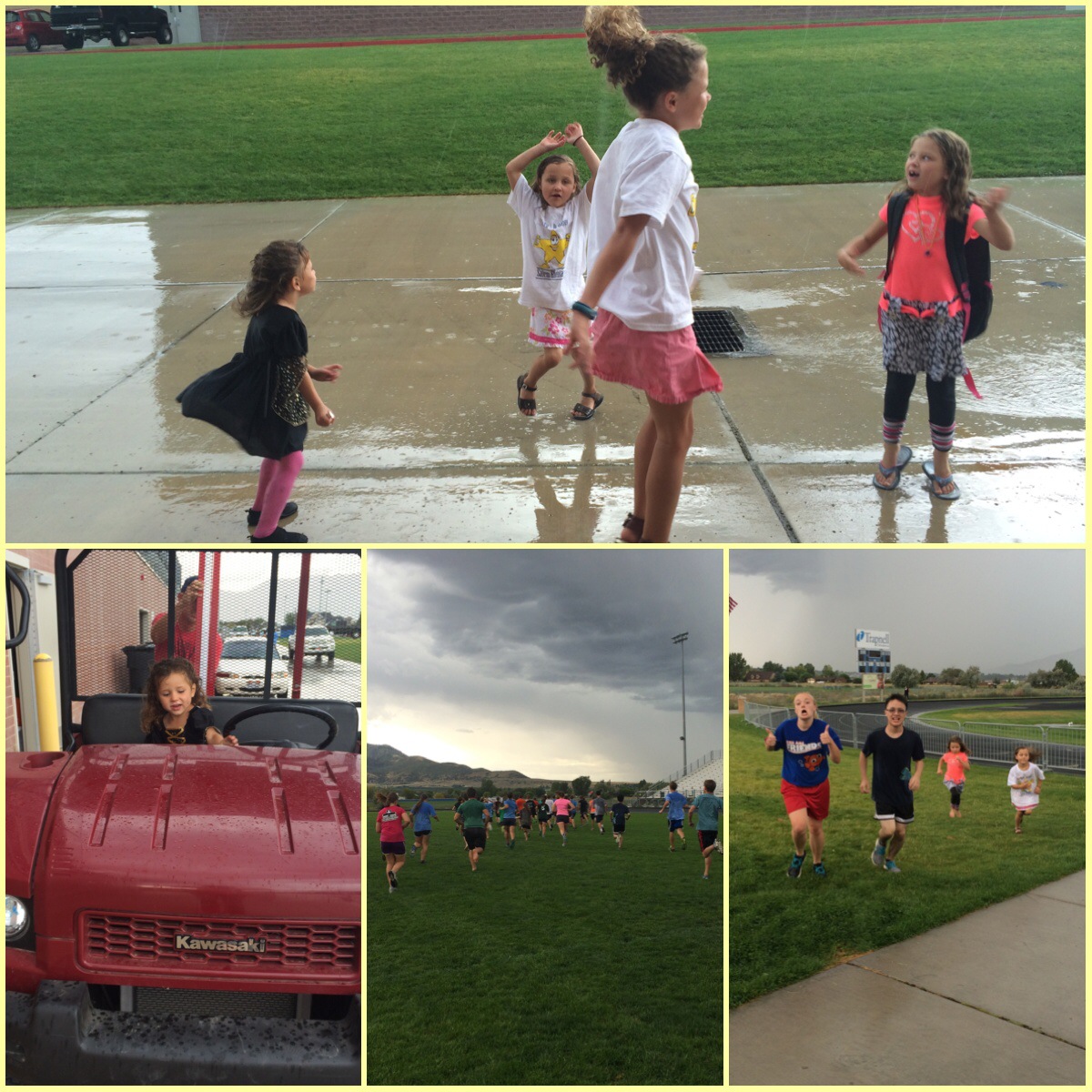 … and then the girls and I headed off to cross country practice. It began to rain hard! But it was a blast!
