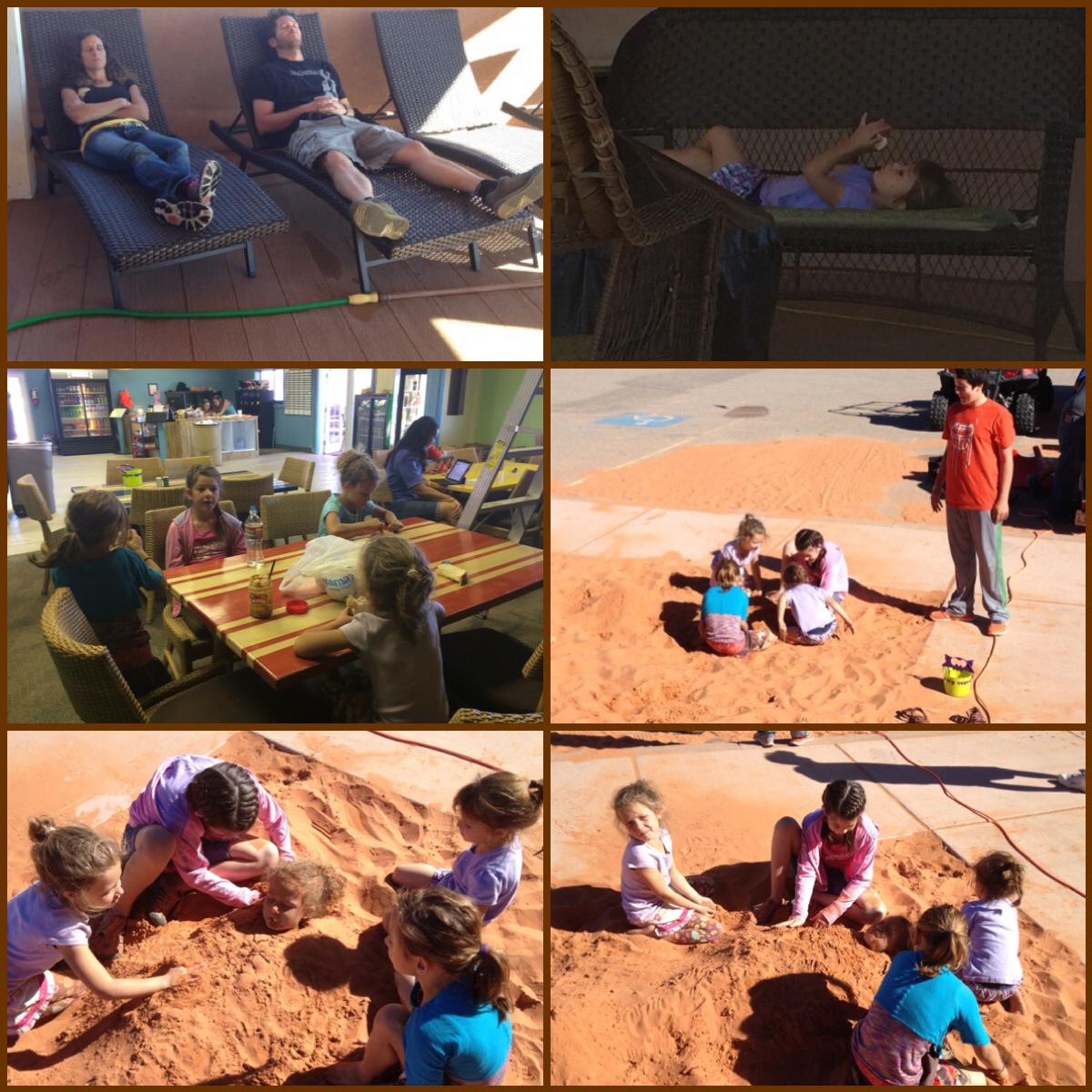 Sunday: The day after the marathon… When I woke up, I have to admit that I was a little nervous to see how I would be feeling soreness wise. I threw my legs over the bed, stood up and began walking… I heard Angels singing! I was not sore at all! Throughout the day I would feel a little tenderness in my thighs but nothing to stress about. I know now that I made the right decision in not racing the marathon (well the true test will come tomorrow on my nice, easy run). We packed and cleaned up everything at the place we stayed at… The Fullmer’s took off and Corom, the kids and I went to Sand Hollow State Park to hang out with Yolanda (Corom’s older sister) and her family. They own the boat, ATV, mini store-restaurant place. So we hung out there, relaxed, listened to General Conference (in the lounge chairs) and ate some yummy food!