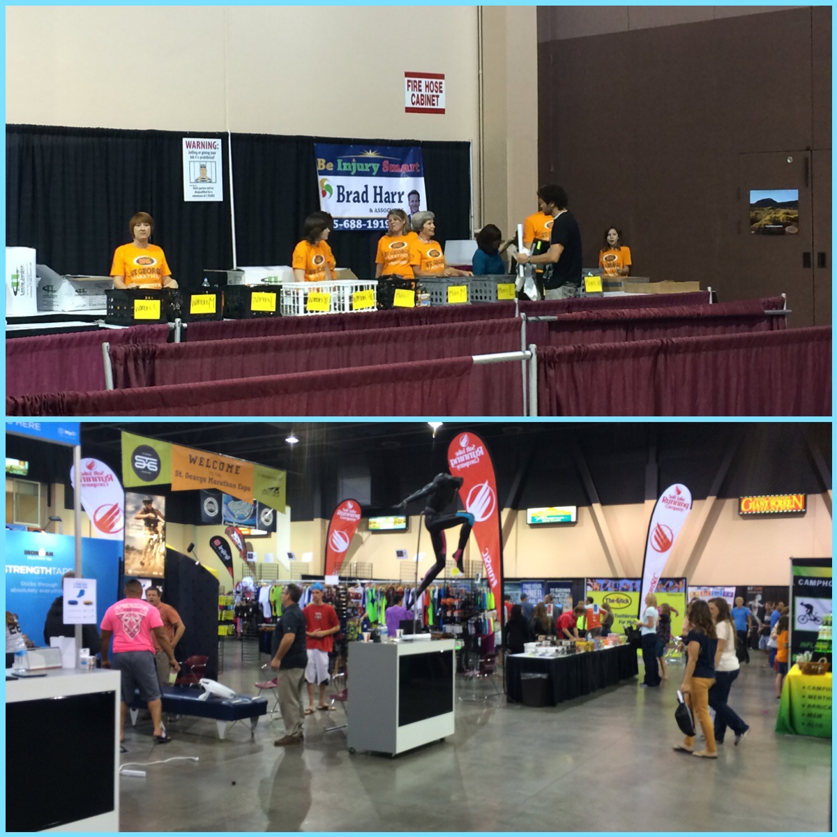 Then it was off to a late start for our 4 hour drive (usually takes us 3:15) to St. George. We went down with the Fullmer’s so with 2 cars it always takes a little longer. We made it to the expo 1/2 an hour before it closed. Corom realized that he “forgot” all his running stuff. He had to buy shoes, shirt and shorts. Yeah… A little pricey!!! By the time we left, there were not many people left.