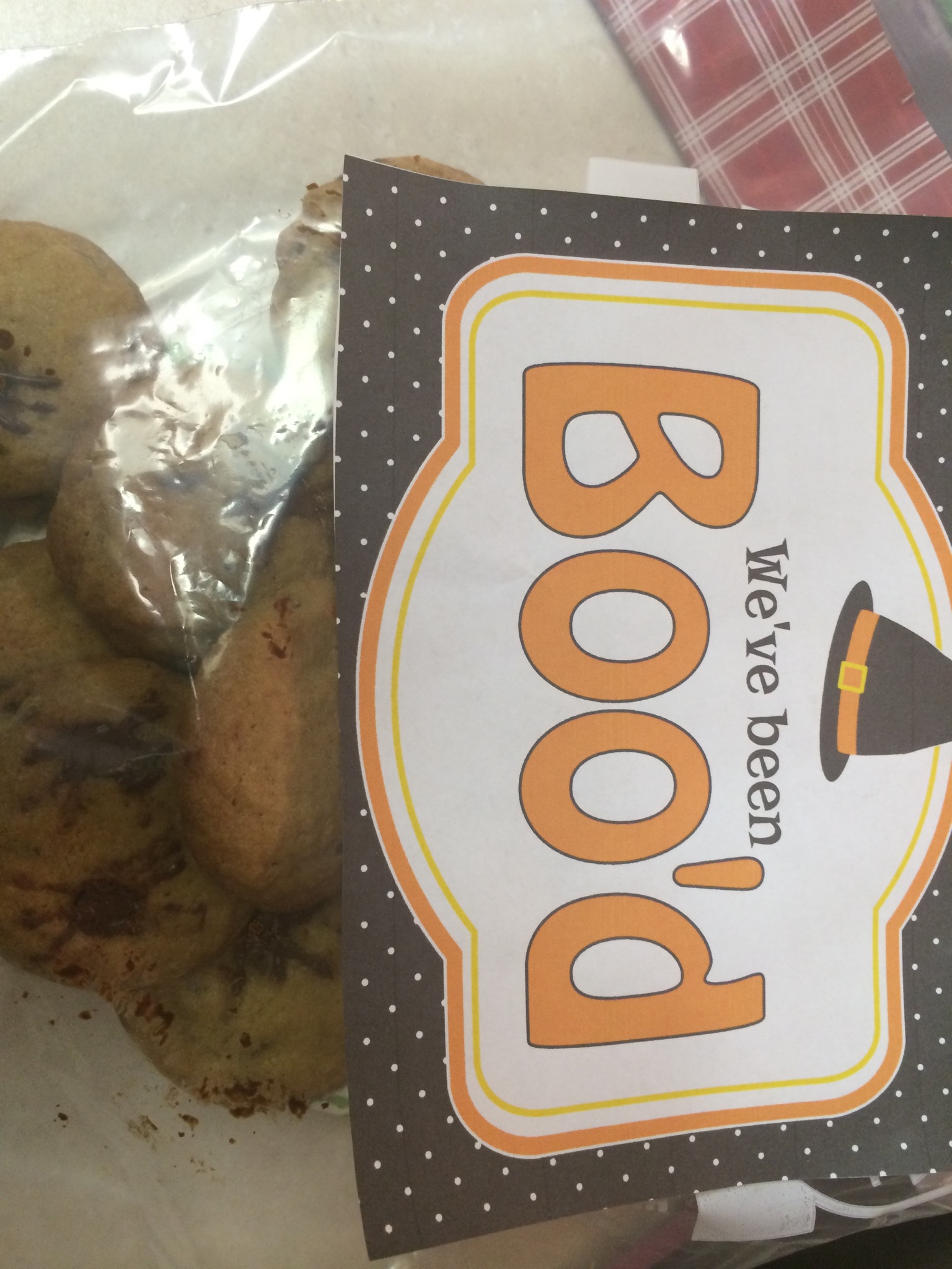 We (the girls and I and a few friends) came back to the house. They played with their friends for a little while and then did homework, etc. We were booed tonight. 🙂 No we didn’t catch the people that did it.