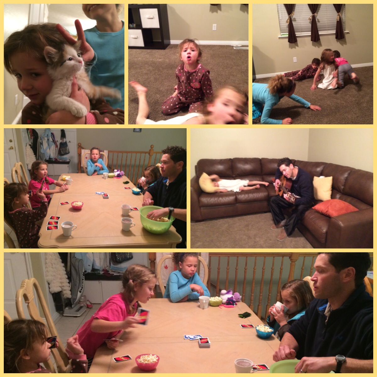 IMG_5534.JPG It is amazing how much our girls “open ” up when they have that one on one time. My oldest usually doesn’t share her feelings with us but tonight was so different. My husband said the same thing about his date. We realized that our girls need their own attention. We decided that once a week… I will take out one and he will take out one. We did the 2 older ones this week and next will be the 2 younger ones. It really was fun. We had Family Home Evening and played Uno (with hot chocolate and popcorn)…