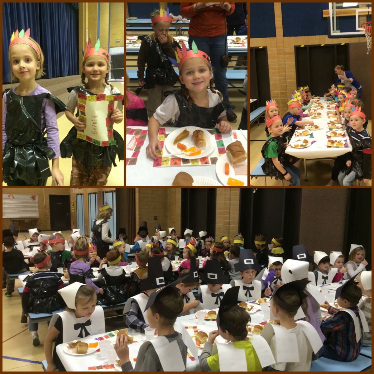 In the morning our kindergartener was so excited to have a feast with the pilgrims (she is an Indian). Well Corom at breakfast went on to tell her the “real” story of the pilgrims and Indians… Something along the lines of the pilgrims took the Indians land and eventually killed them all. Umm probably not the best story to tell right before the feast… Yes I kept telling him to stop but if you know Corom, he didn’t. At the feast today all 65 kids were sitting down while the kindergarten teachers were explaining the history (there were also about 10 moms there helping and me). Well… My daughter shoots her hand up and proceeds to say, “my dad said the pilgrims took the Indians land and killed them all.” Her teacher tried to hold back her smile and went on to tell them the rest of the story. I was a little embarrassed! Anyway… I helped with the Thank-o-grams and then the assembly at the school (turkey call & strut)…