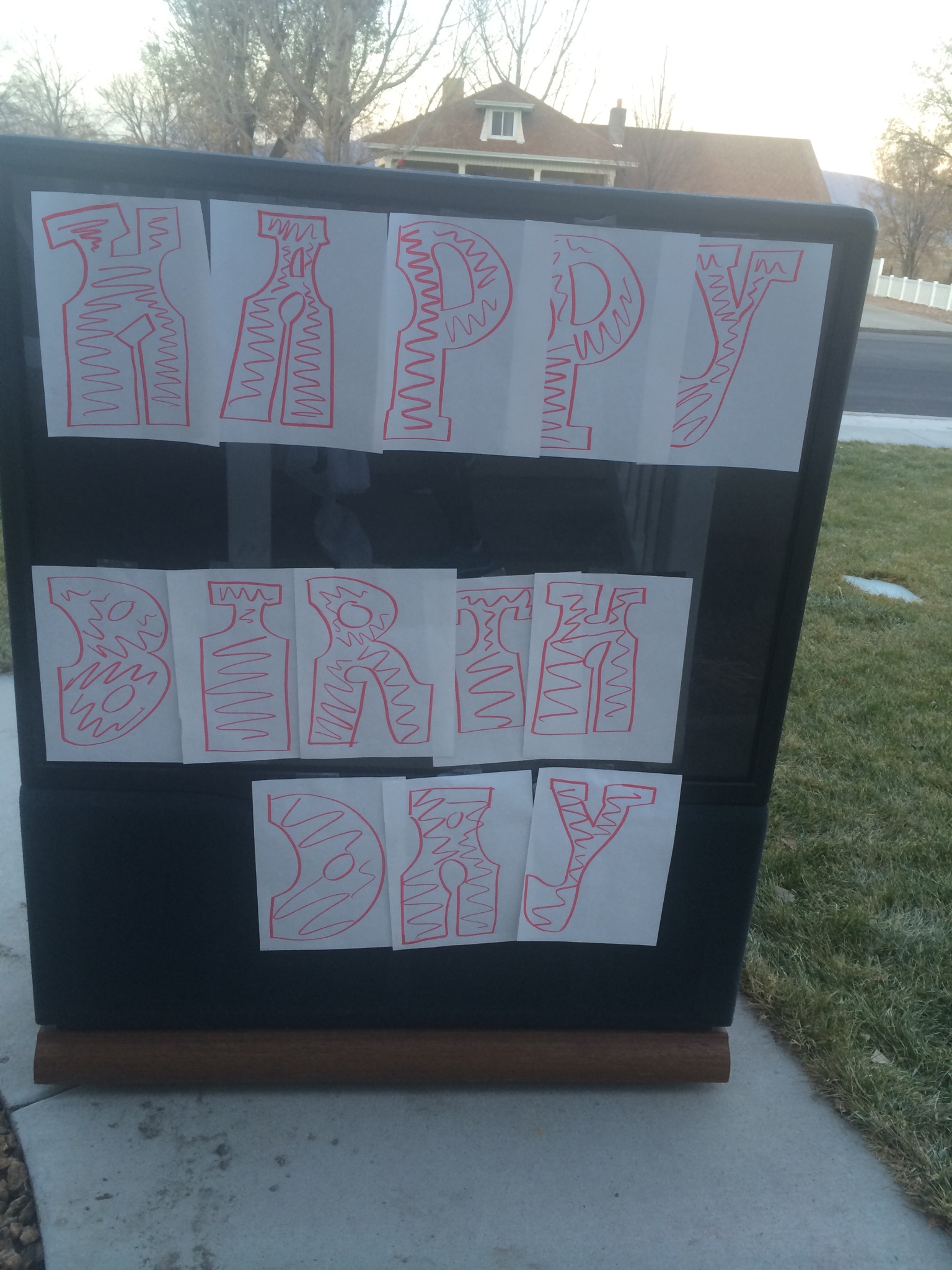 It was a giant t.v. With happy birthday written across it. Great!!! At home Corom left for work and the girls and I did a lot of cleaning! We brought Corom lunch and balloons to his work (well we were not aloud in so we just dropped it off)…